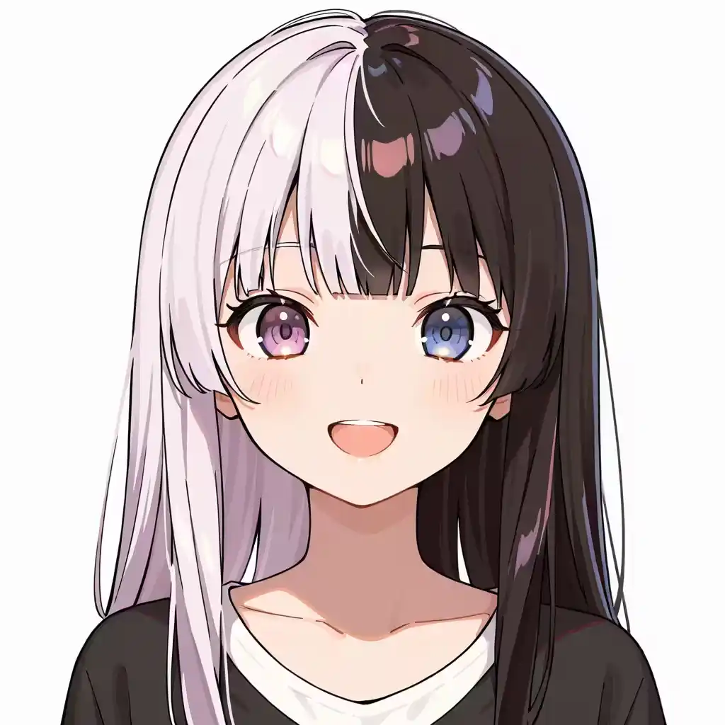 1girl,two-tone hair, brown hair, blonde hair, straight hair, colored inner hair, streaked hair, upper body, casual, straight-on, :d, (head tilt:0.3), white background,複数色・全体